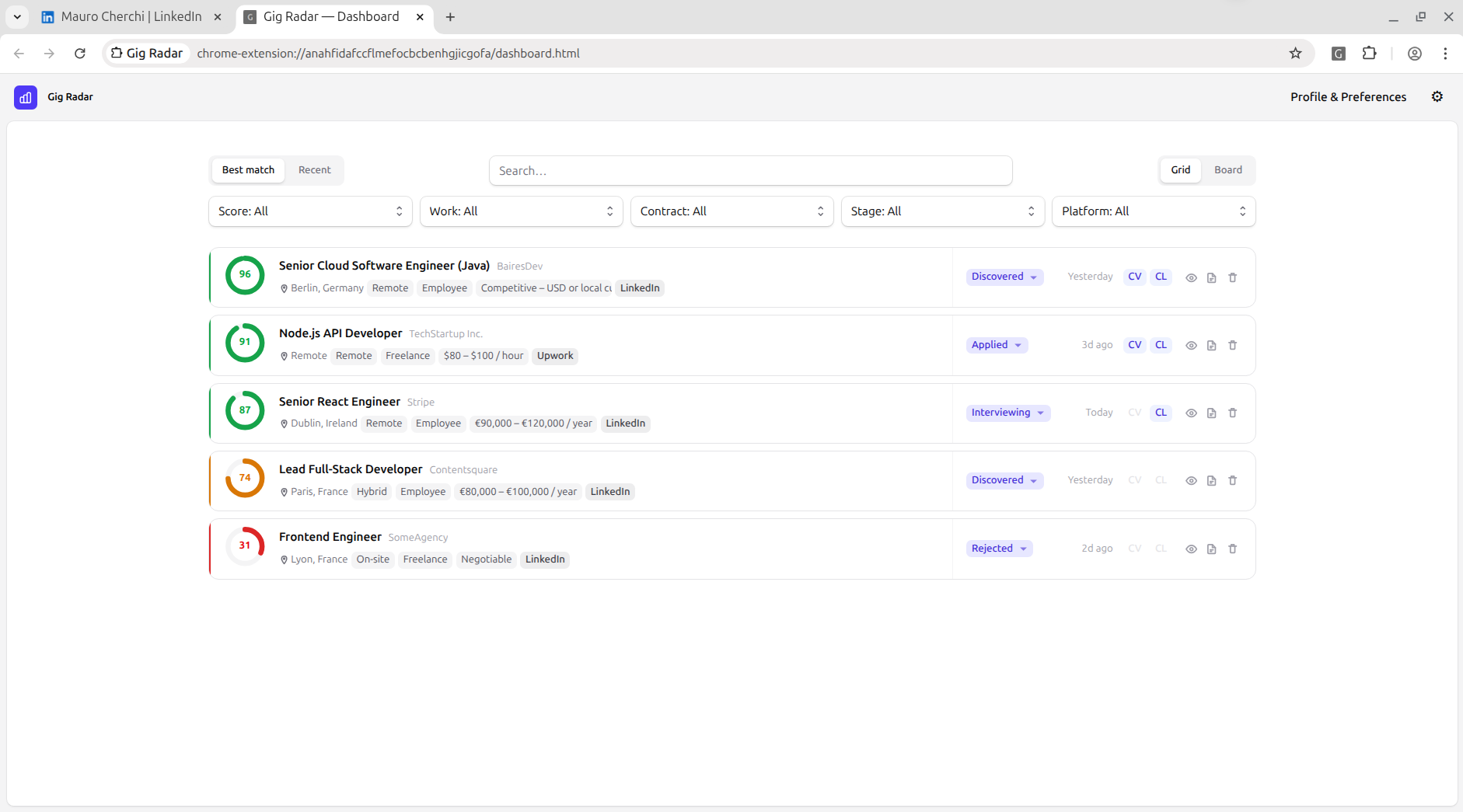 It works on LinkedIn, Upwork, Malt, agency sites, and more. It captures gigs as you browse supported platforms.